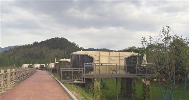 (图:禾田溪太空舱星空露营地放置鸿普负氧离子度假养生装配式房屋照片)